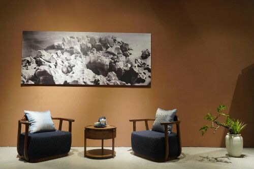 我们本次参展的作品,主要是宅院家居系列,包括月明圆、游弋、云和客厅,南谷的第三空间茶室系列知竹茶室、原本禅茶室等,以一种东方意境去还原王维诗中的宅院生活。