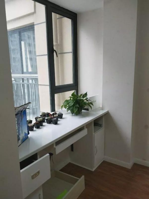 把飘窗改做了书桌柜,非常显得也比较有设计感,还可以提供蛮不错的储物空间呢!