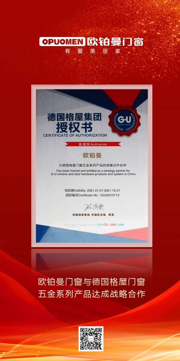 近日,欧铂曼门窗与全球知名建筑五金品牌——德国格屋正式签约达成战略合伙伴。这将意味欧铂曼门窗五金配件供应链系统进一步升级,2021欧铂曼门窗产品细节、配件再升级,只为给爱家的你定制更好的家居体验!