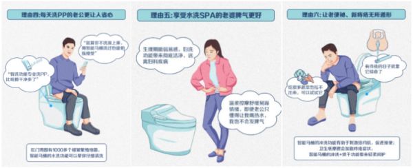 细品这10张漫画,东北媳妇小张并不算胡搅蛮缠,智能马桶对于促进夫妻健康、维系家庭和谐,居然很有帮助!比如,新婚家庭时常有亲友来串门,共用同一个普通马桶,那简直是洁癖妻子的噩梦!而有了智能马桶,座圈抑菌、紫外线杀菌一次搞定,不用费力打扫,就能保持洁净。智能马桶的除臭防溅设计,以及免触翻盖功能,也能让生活习惯不同的夫妻减少争执,至少谁也不会被谁熏晕!