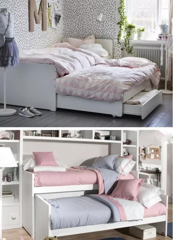 还有,你想要双人床,又想要省空间的话,也可以设计成抽拉床的样式。
