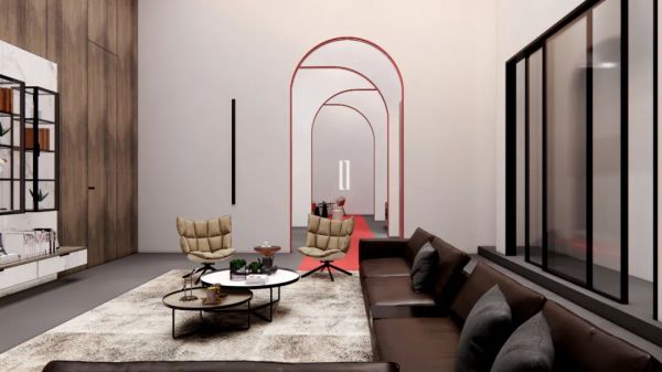新标家居在本次展会中以“高端定制 中国新标”为主题,携旗下品牌新标门窗、新标高端定制盛大亮相,将极简、轻奢等高级感元素分解与重构,融合窗、门、墙、柜、软装的一体化家居风格,打造出轻奢感的高端定制盛宴。艺术解构 圆舞盛典Round Dance Ceremony本次新标展馆主题“艺术解构 圆舞盛典”,将品牌视觉DNA融入空间形态,打造独一无二展示空间,以戏剧化的场景切换方式打造最具仪式感的家居盛典。白色圣洁的空间融入热情洋溢的红色,光感与曲线展现出灵动美感,宛如一场姗姗来迟的圆舞盛典。