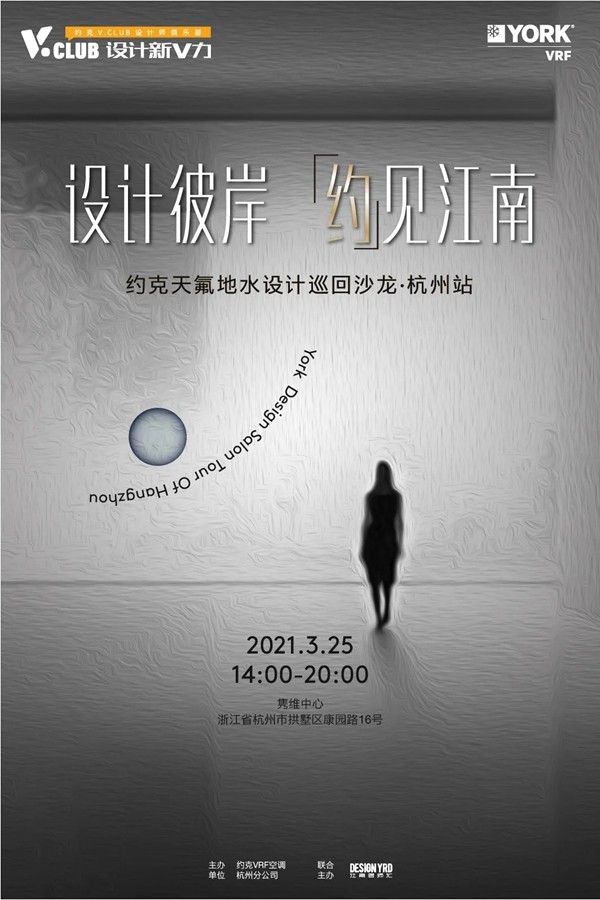 2021年3月25日,由约克天氟地水中央空调主办,江南名师汇联合主办的“设计彼岸•‘约’见江南设计巡回沙龙•杭州站”将在隽维中心(杭州市拱墅区康园路16号)启航。来自杭州、嘉兴、湖州的百余位设计师,将围绕如何满足人们不断提升的居住环境要求,从商业设计、未来趋势、逻辑思维、绿色环保、科技创新等多角度,展开室内设计师视角下设计与应用的相关漫谈。