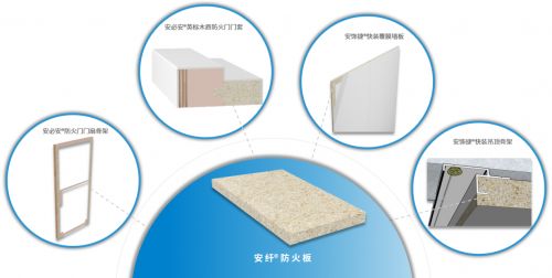 安纤®高强防火板是安必安公司自主研发无机胶凝体系替代传统胶水粘合农植循环物等制造出新型生物基无机复合防火板,实现:
