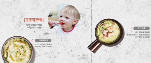 根据《健康膳食计划》,宝宝餐的核心在于营养与健康。不同于成年人常吃的食物,宝宝的辅食一般从比较稀的糊状开始慢慢加稠。诸如土豆麦片泥、虾仁炖蛋都是比较适合年龄小的宝宝,无论是口感还是营养,都比较符合宝宝所需。另一方面,在成长发育阶段,宝宝的辅助不能太单一,要逐步帮助宝宝建立对“食物”的感知。田螺云厨宝宝餐最大的优势便在于它内置了与营养学专家合作研发的健康菜谱,专业有效,省去新手妈妈在一大堆冗杂的信息中挑选菜谱的时间,助力宝宝健康成长。