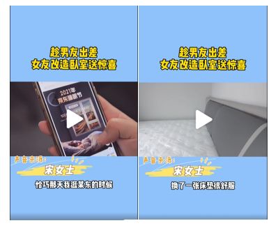 偶然间,宋女士在京东买东西时,发现了“京东睡眠节”页面的卧室改造活动。于是,她趁着男友出差,下单了装修服务和卧室产品,不仅重新粉刷了墙面,屋内整体做了隔音处理,还更换了新床垫,仅仅用72个小时,就让曾经的老旧临街闹户焕然一新。男友出差回来,看到改造后的房子分外惊喜,睡眠质量也比以前好很多。