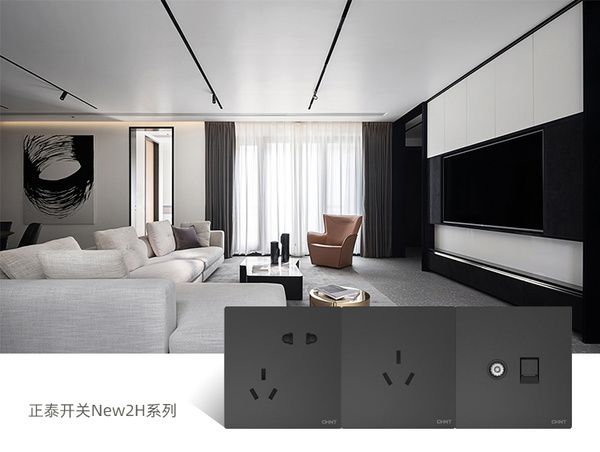 现代客厅装修中,有不少灯具及家电产品都会汇聚于此。例如各类灯具、空调、电视、机顶盒、音响等都需要用到开关插座,这就难免会有开关插座的配备。想要在客厅区域塑造出大气有质感的居家氛围,除了要提前规划好这些开关插座的数量和布局,还可以在设计上动点小心思。比如在电视墙背后将正泰开关New2H系列斜五孔插座、三孔插座、电视电脑插座等通过一体化联体边框自由组合在一起,视觉效果更佳平滑整齐,轻松打造质感生活空间。