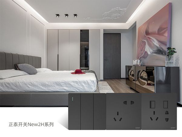 现在很多人都习惯在睡前玩手机或上网。因此在卧室床头的位置,有不少充电插座、床头灯、主灯等产品的使用及控制,卧室床头墙的位置建议搭配正泰开关New2H系列的三开双控、斜五孔插座、USB五孔插座联体使用它不仅能简化繁琐的墙面视觉,在触控体验感上也很好~正泰开关New2H系列采用3.6度微小摆角设计,在拥有舒适按压感的同时,尽可能减小音量。除此之外,在夜晚关闭灯光时,正泰开关New2H系列上的指示灯还能轻松解决起夜摸黑的烦恼,给家庭以温柔的呵护~