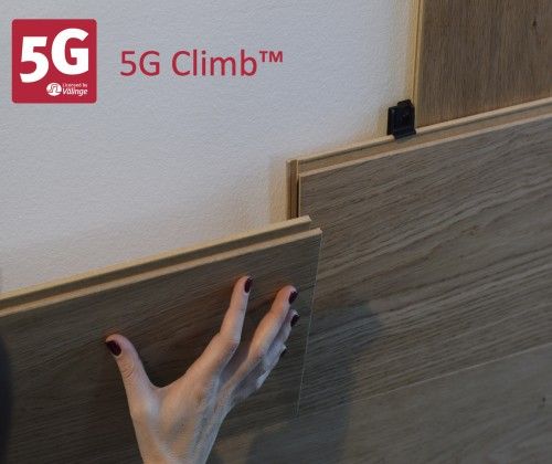 革新性的5G® Climb™ 源自知名5G® 锁扣系统,地板可直接用作固定框架,通过使用专门设计的扣件,仅需轻轻一扣,墙板便可从水平、纵向锁定或呈人字形锁定。让您的地板“攀墙而上”,无需使用任何工具便可以快速简单地完成墙板安装。同时还可反复拆卸使用,适用于多种墙面的铺设,可与地板及屋顶贴边线相融合。