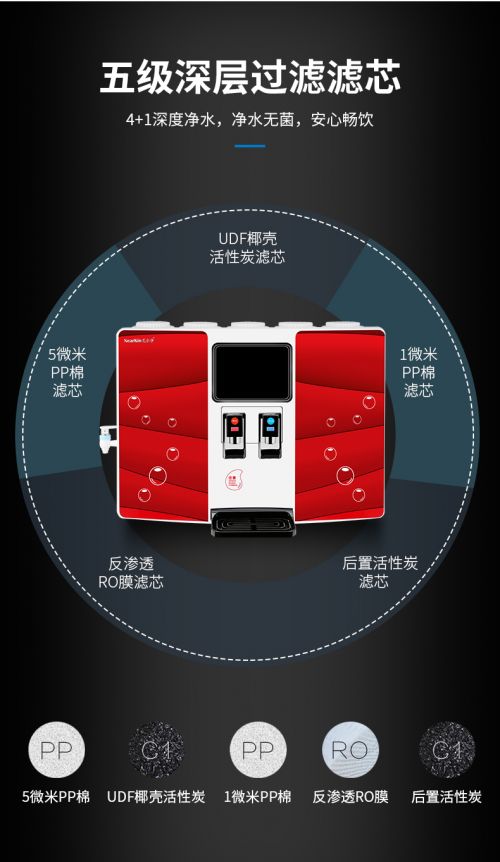 这款净水器的最大特色就是大通量无桶,这也是以后的主流方向。5重过滤,过滤铁锈,泥沙,水藻,病菌,重金属,有机物,无机盐等。