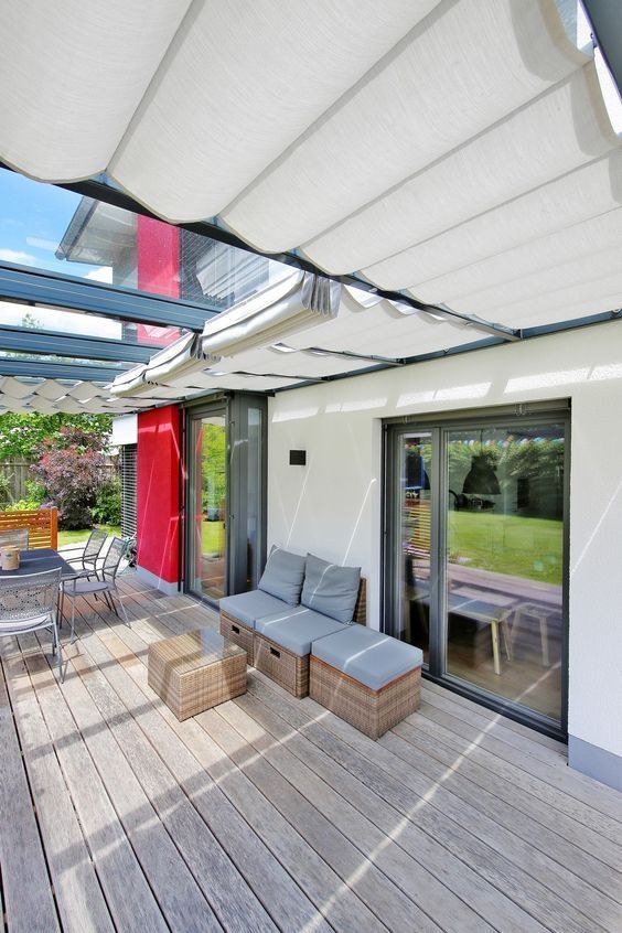 跟遮雨棚作用差不多,露台平时看着是很舒适,但到了夏天上面简直就是个“大蒸炉”,根本没法待人,所以需要在露台的两侧装上的自从升降的遮阳棚,既能同时降低露台和室内的温度,又可防止午后的阳光太刺眼了,又能遮挡隐私,不需要的时候随时随地都能收起来,相当实用。
