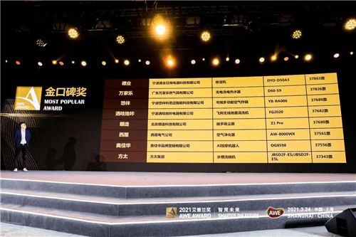 “AWE艾普兰优秀产品奖”旨在对每年特定细分品类中,有显著优势并能充分展现该品类最好水平的产品进行嘉奖,“金口碑奖”则由消费者投票产生。获得“金口碑奖”的产品不仅代表着技术、品质和口碑,还代表着能为消费者带来更舒适、更智能、更健康的体验。