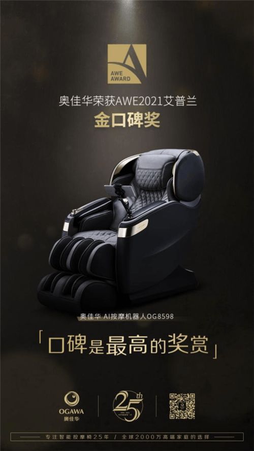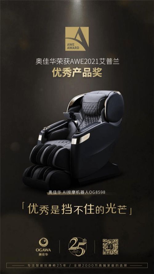 敏锐的消费者洞察、过硬的产品品质、优质的用户体验,相信这是AWE组委会和用户选择奥佳华并将这宝贵的一票投给奥佳华AI按摩机器人的主要原因。未来,奥佳华将不负信赖,继续坚守品质与创新,用心研发创新产品,为用户带来更多优秀的产品。用更多的智能科技,守护每一个家庭的健康!