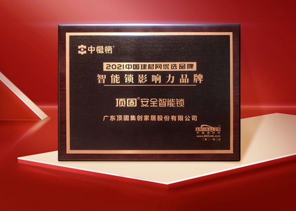 会上,顶固安全智能锁凭借自身的企业实力、技术创新能力与市场影响力,从一众优秀家居品牌中脱颖而出,荣获2021年中国建材网优选品牌智能锁影响力品牌奖。