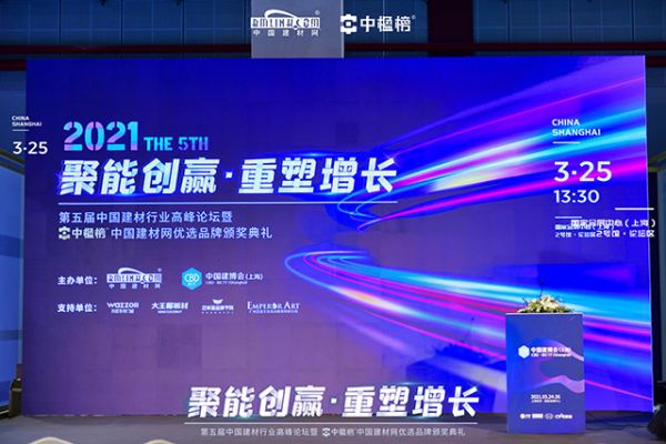 3月25日,由中国建博会(上海)和中国建材网联合主办,以“聚能创赢,重塑增长”为主题的第五届中国建材行业高峰论坛暨【中盈榜】2021建材网优选品牌计划颁奖典礼在上海国家会展中心盛大举行。