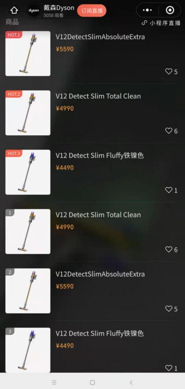 2021年3月25日,戴森(Dyson)发布新旗舰型号无绳吸尘器V12 Detect Slim,并且提供了3种选择,Total Clean售价4990元,Fluffy售价4490元,Absolute Extra售价5590元。从这个定价区间来看,依然是高端定位。