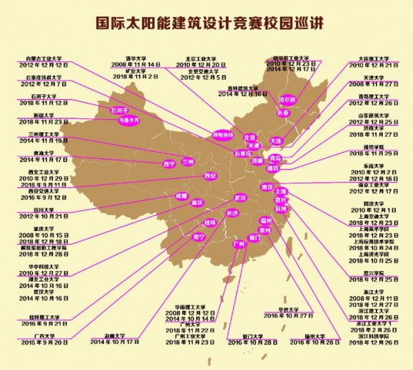 图片说明:国际太阳能建筑设计竞赛校园巡讲足迹