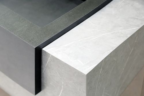 此外,岩板既可以做到20mm以上的厚板,也可以做3-6mm超纤薄板,可以直接贴在木饰面上,轻、薄、柔、可塑性强等特性令它和家具的配合度极高。因为岩板的生产工艺非常复杂,在挑选岩板材质家具的时候,建议选择知名度高、品质有保障的家居品牌。