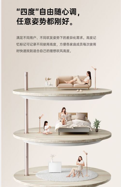 不少消费者反馈,真不愧是“暖心科技”,这款吹风机在细节处理上真的是超暖心。例如,它的“四度调节”,可以从高度、温度、角度、速度四个方面进行自由调节,无论你想要站着吹,躺着吹,高温吹、低温吹还是冷热交替吹,都可以根据个人需求自由调控,满足不同人群的多样化需求。
