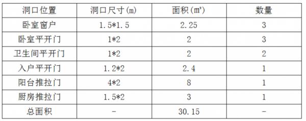 常见的住宅建筑面积一般为90㎡,威亚森专业技术人员据此提供了一份建筑洞口面积清单(参考版):