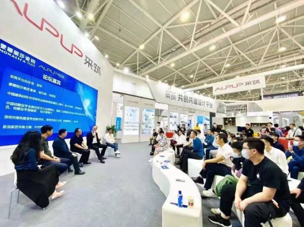 在本次设计展上,蒙娜丽莎与采筑平台联手发起“世界高度·中国智造”蒙娜丽莎大板、岩板新品交流会。现场邀请采筑平台总经理都军、蒙娜丽莎集团董事副总裁邓啟棠、中国建筑材料科学研究总院同继锋教授、中国硅酸盐学会测试技术分会理事长包亦望博士、深圳市绿色建造学会秘书长孙占琦等重量级嘉宾深入探讨岩板新材料的蓝海市场。其中,蒙娜丽莎集团副总裁刘一军博士更为大家现场解码蒙娜丽莎大板、岩板智造超越发展之路。