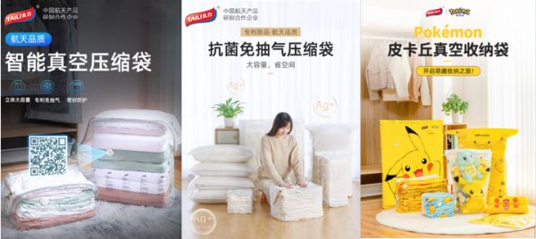 而太力的收纳用品基本都契合消费者越来越关注的这三大趋势:太力免抽气真空收纳袋的1.68秒按压排气的专利技术,智能二维码随时精准定位衣物位置、太力抗菌真空收纳袋呵护家人健康,太力联合宝可梦IP款式压缩袋贴近潮流脉搏。