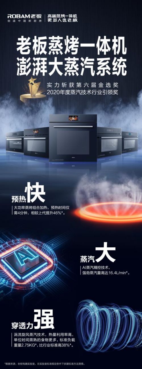 老板电器以“创造人类对厨房生活的一切美好向往”为使命,针对中式烹饪需求创造出不少实用的厨电好物,老板蒸烤一体机就是其中翘楚,让厨房新手也能通过智能厨电做出美味食物,堪称“美食大杀器”。