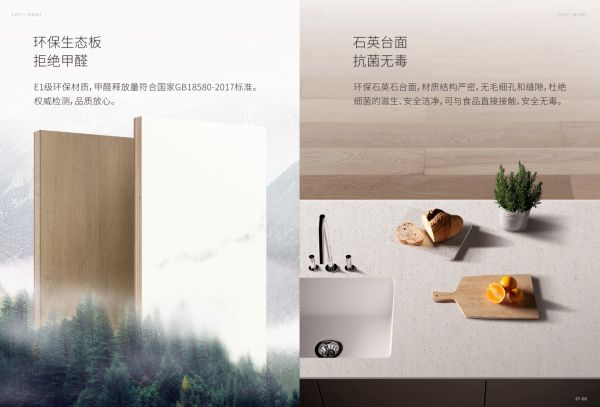 针对厨房饱受油污水渍的侵袭的特殊环境,欧罗拉健康橱柜选用材质结构严密、无毛细孔和缝隙的环保石英石来打造台面,杜绝了细菌的滋生,可与食品直接接触,安全无毒。