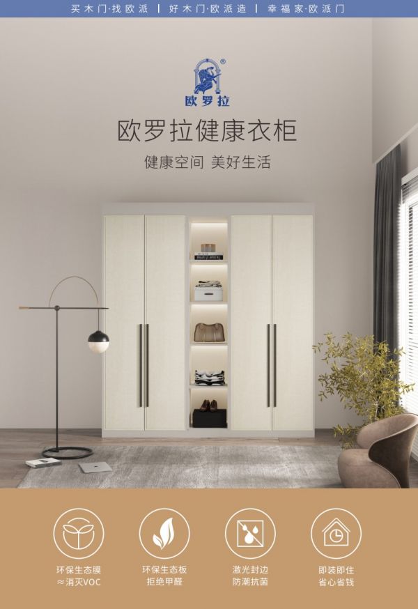 而甲醛的危害一直是消费者选购柜体时着重关注的问题,实际上,如果柜体不够环保,还可能存在着其它有害化学物质:如氡、苯等。欧派推出的欧罗拉健康橱衣柜,甄选E1环保的生态板材,甲醛释放量符合国家GB18580-2017的标准,其表面的环保生态膜,可有效避免有害气体的产生。