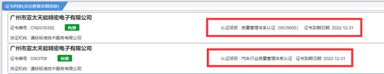 众所周知,智能锁行业目前并没有成熟的质量管理体系认证。为进一步开拓市场、提升高品质要求和质量管理能力,亚太天能在原来ISO9000质量体系的基础上,进一步执行IATF16949国际汽车质量管理体系要求,为客户提供更完备、可靠的质量保证。