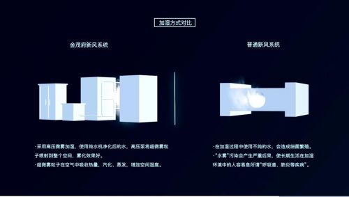 过滤后的新风还会经过高压微雾加湿端,此时系统就会根据当前的室内湿度对空气进行调节,让空气以适当的湿度进入到室内,给居住者一个24小时都舒适的空间体感。