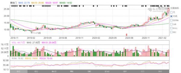 喜临门的技术盘面完全符合这一跟进指标。分析其2019-2021年的股市年K线可知,股价在经历了长时间的低区间平稳运行后,随着资金不断进场,价格开始脱离成本区间,进入快速冲高期。资方向头部集中的趋势明显,短期来看抱团不会瓦解,长期来看有牛股趋势。