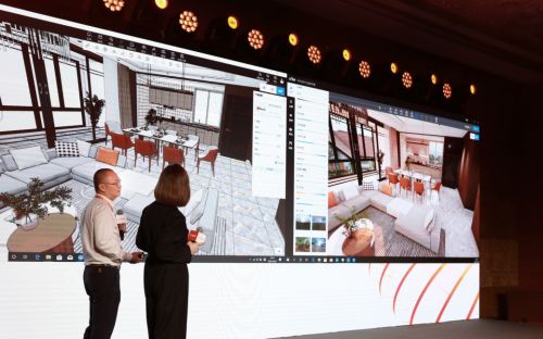 峰会现场演示了三维家3D云设计实时光追渲染等效果。可以看到,设计师根据消费者提出的个性化需求,实时调整设计,消费者可以实时看到渲染效果,还可以在线生成方案动画视频,消费者可以一键分享给自己的家人好友,大大提升设计效果体验。