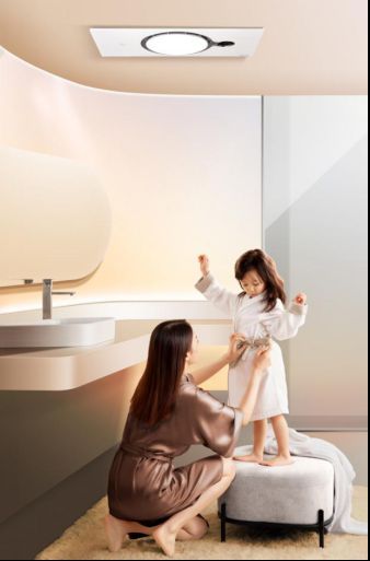 这种可以吹出环抱暖风的黑科技,就是奥普的第九代暖风科技。奥普将传统方形的PTC加热器改进成了环形,并用2年多的时间去优化它的性能。现在,它已经实现了3倍热能量矩阵,发热体量相当于普通浴霸的3倍,散热面积超47%。此外,热能环浴霸还采用了双鹦鹉螺旋风道,使风扩散得更为柔顺;而旋涡增压仓的配置更是便于将风加压,吹得更远,帮助实现卫浴空间的“处处暖”。