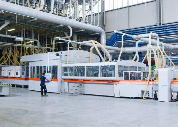 圣堡龙陶瓷所属的新锦成集团于2020年大举入局岩板市场,志在撬动未来的千亿市场,目前集团公司汇聚产学研各方力量,立足全球高端前沿技术,斥巨资打造了家居智能科技产业园,与意大利萨克米、广东道氏技术等优秀的企业建立战略联盟合作,基地拥有雄厚的岩板深加工技术力量,在业内具备规模庞大、设备齐全、功能先进、品控严格的超大型岩板深加工生产中心。集团引进意大利全套先进设备,规划8条岩板生产线,打造规模化、数字化、智能化岩板质造标杆。