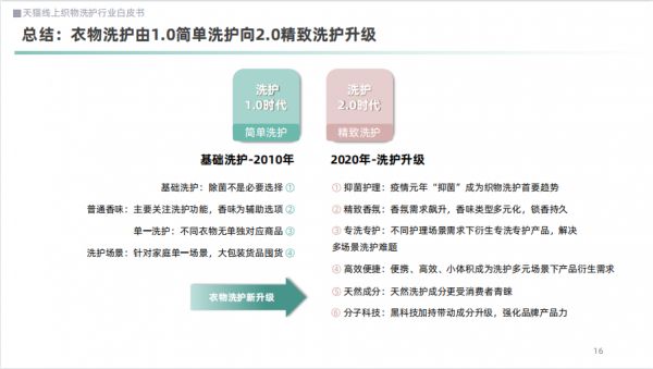 《天猫线上织物洗护行业白皮书》揭示了线上消费者关于织物洗护用品的行业新趋势和消费新需求,带大家了解更多织物洗护的知识点。