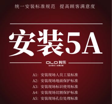 产品交货安装周期、安装现场维护是定制家具产品客诉集中的环节。为了优化这个环节的服务能力,我乐家居指定安装5A安装标准,以制度规范流程,从根源上减少问题的产生,为用户提供更省心、安心的定制消费体验。