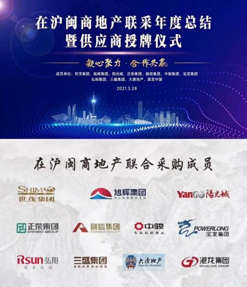 在沪闽商地产联合采购组织是由在沪优秀闽商地产世茂集团、旭辉集团、 阳光城、正荣集团、融信集团、中骏集团、宝龙集团、弘阳集团、三盛集团、大唐地产、港龙中国等组成,通过业内信息交流、资源共享、优化供应链、降低成本、提升品质、共同创造采购价值。旨在更好地推动在沪闽商地产之间的互动、创新和合作,同时弘扬闽商的团结拼搏精神。