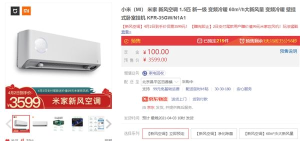 3月30日,小米在其春季新品发布会上正式发布了米家新风空调尊享版等系列新品,系统性地推进“全屋智能”概念,为用户提供更完整、更便捷、更细致入微的美好生活体验。本次米家新风空调尊享版的创新发布是对美好生活的最好诠释,这与京东家电“焕新你的生活”理念不谋而合。作为小米新品首发的重要渠道,在3月30日发布会当晚京东已开启定金预售,全渠道加码,助力小米抢占空调市场新风口。