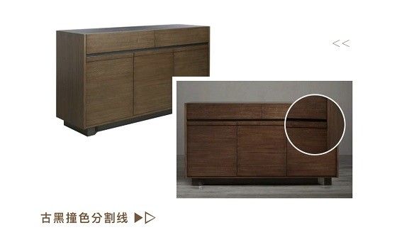 不需要大动干戈,便生发出画龙点睛的效应。柜面对称的线条中,还隐藏有特别的设计心机,以一条古黑色撞色分割线让上下分隔开来,主次分明之余,为层次间增添了变化性。