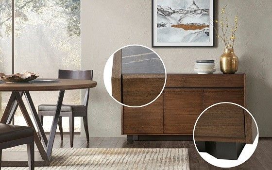 为营造朴质温和的整体感受,餐边柜巧妙混搭了各具特点的多元材质。