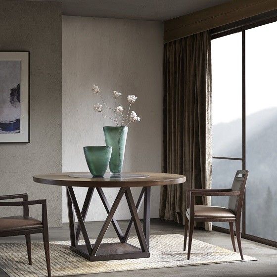 回顾Althea的餐桌系列,的确是餐厅的不二主角。它延续了传统圆桌造型,满含“圆满”的福寓,又在整体中考量现代因素,以几何构线条巧妙化解了传统木质餐桌的厚重感。