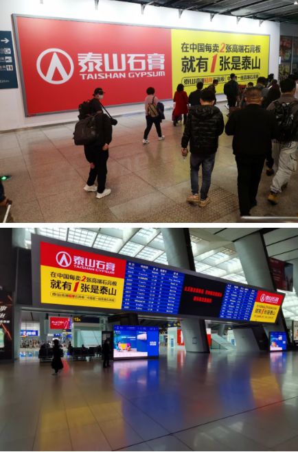 此次泰山石膏品牌广告“在中国每卖2张高端石膏板就有1张是泰山”全面覆盖北京南站、上海虹桥站、广州南站、深圳北站、南京南站、杭州东站、武汉站、南昌西站、合肥南站、郑州东站、长沙南站、重庆北站、西安北站、济南站等在内的全国各大主要城市的24大综合枢纽站点、近三百块广告屏,创造了泰山石膏高铁广告覆盖全新高度。此外,泰山石膏品牌专列“泰山高端石膏板”号将在上海虹桥站震撼首发,以全方位、立体化的传播方式精准触达更多南来北往的消费者,搭乘着令人骄傲的“中国速度”,让泰山石膏的品牌影响快速席卷全国。