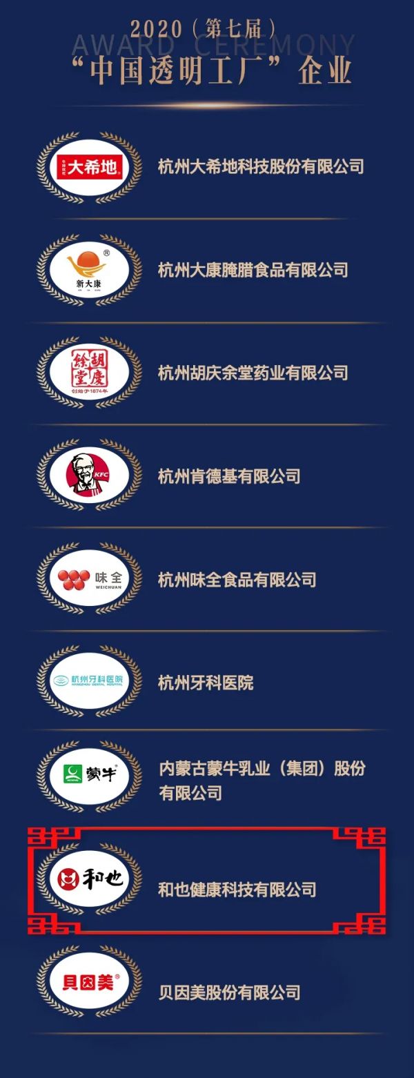 (和也获评第七届“中国透明工厂”企业)