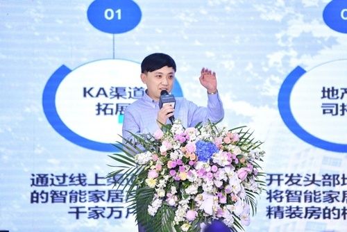 随后,由北京居然之家智能科技有限公司总经理方予之先生上台介绍尚屋智慧家项目,方总表示:尚屋智慧家是居然之家重点打造的智能家居和家居用品销售平台,目前平台引入华为、苹果、欧瑞博、如影、调调、易来、摩宝、莹石、凯迪仕等10余家国内一线智能家居品牌,涵盖总线无线、全屋智能、模块智能等多个家居场景。未来还会有更多国内外品牌的加入。此外,方总还介绍了尚屋智慧家在KA渠道、地产公司渠道、家装公司设计师渠道、连锁拓展四大发展计划, 计划进一步提升2021年的整体营收规模。
