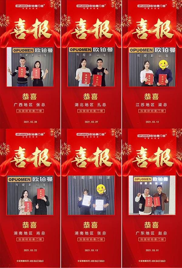 一年之计在于春,春回大地万物复苏,一切都是美好的开始,近年来欧铂曼门窗凭借匠心品质以黑马姿态出现在大众眼前,赢得了一群志同道合的家人一同并肩前行,共同走上财富快道。相信品牌的力量,3月欧铂曼门窗版图再扩增20城,欢迎家人们加入欧铂曼大家庭,祝家人们生意兴隆、财源广进!