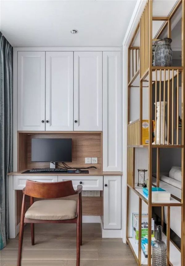 把阳台改造成书房时,不要只用一盏吸顶灯照明,阅读时对于光线的要求是正常生活的4倍,一盏吸顶灯完全满足不了要求。可以使用吸顶灯或吊灯做基础照明,再搭配壁灯、台灯、落地灯等组合打造阳台的灯光。