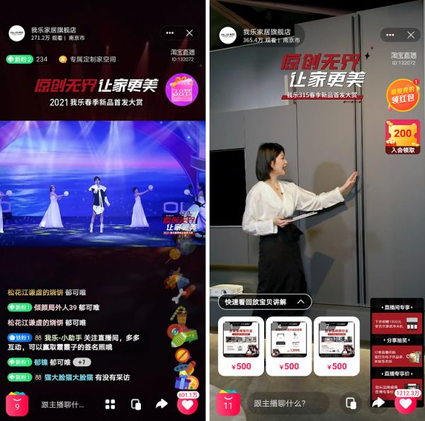 据查阅,“我乐家居315品牌日暨春季新品首发大赏”活动,在3月6日直播当晚就吸引了365万+实时观看人次、超1212万+的点赞数,创造了活力装修榜、观看人数、点赞数等多项第1,刷新了定制家居行业数字营销新纪录。