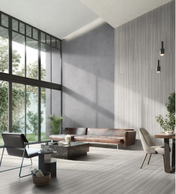 不少人会认为,看惯了水泥路、水泥墙,还用水泥色的地板,是否太单调。其实看过这款瓷砖之后,很多人都会改变看法。这款产品每一面都融合了原始与经典的美感。就比如客厅,采用这款产品中的星际中灰,远看凹凸不平,层次错落,而且空间感被无限拉伸。想着午后,喝着下午茶,看着落日,平添一种空灵的感觉。