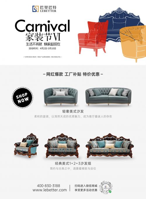 选择一套大气优雅的美式沙发,是身份的象征,也是品味的体现,此次家装节VI给予的特价优惠,将以什么惊喜价格呈现?敬请期待!